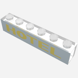 - Nom : Brick 1 x 6 without Centre Studs with Yellow/Blue HOTEL Print