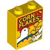 - Nom : Brick 1 x 2 x 2 with Inside Stud Holder - Cereal Box with Chicken and 'CORN FLAKES' Print