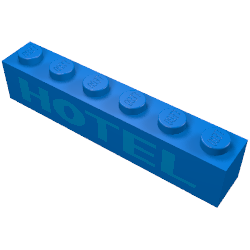 - Nom : Brick 1 x 6 without Bottom Tubes with Cross Side Supports with Blue 'HOTEL' Curvy Print