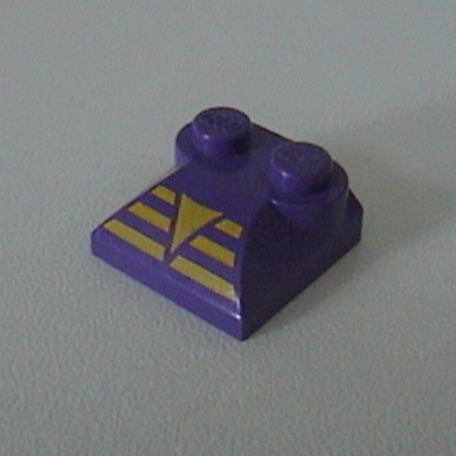 - Nom : Brick Curved 2 x 2 x 2/3 Two Studs, Curved Slope End with Yellow Triangle on 3 Bars Print