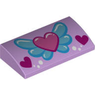 - Nom : Slope Curved 2 x 4 x 2/3 No Studs with Bottom Tubes with Pink Heart on Blue Wings, White Circles and 2 Magenta Hearts Print