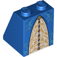 - Nom : Slope 65° 2 x 2 x 2 with Bottom Tube with Gold Panel with Blue Jewel and Gold Fringe Print [col05-14]