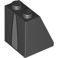 - Nom : Slope 65° 2 x 2 x 2 with Bottom Tube with Light Bluish Gray Inset Skirt Print