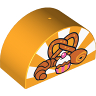- Nom : Duplo Brick 2x4x2 Curved Top - Cupcake, Roll, Croissant, and Pretzel on Bright Light Orange and White Sun-rays Background Print