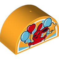 - Nom : Duplo Brick 2x4x2 Curved Top - Red Rabbit and Four Balloons with Medium Azure and Bright Light Orange Sun-rays Background Print