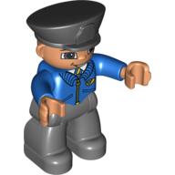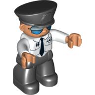 - Nom : Duplo Figure Adult - Black Hat (Police) - Medium Blue Top with Pockets and Badge - Light Flesh Face and Hands - Black Legs