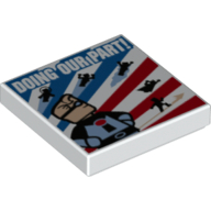 - Nom : Tile 2 x 2 with Red White Blue Stripes and 'DOING OUR PART!' Superheroes print