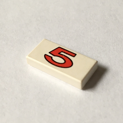 - Nom : Tile 1 x 2 with Number 5 Red Print