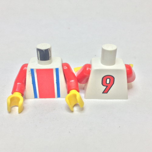 - Nom : Torso Soccer Vertical Striped Red/Blue and No. 9 Back Print / Red Arms / Yellow Hands