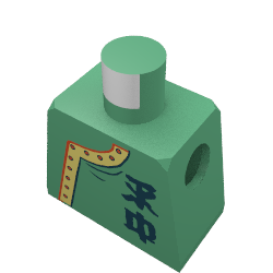 - Nom : Torso Adventurers Orient Side-Buttoned Shirt with Chinese Letters Print / Green Arms / Yellow Hands