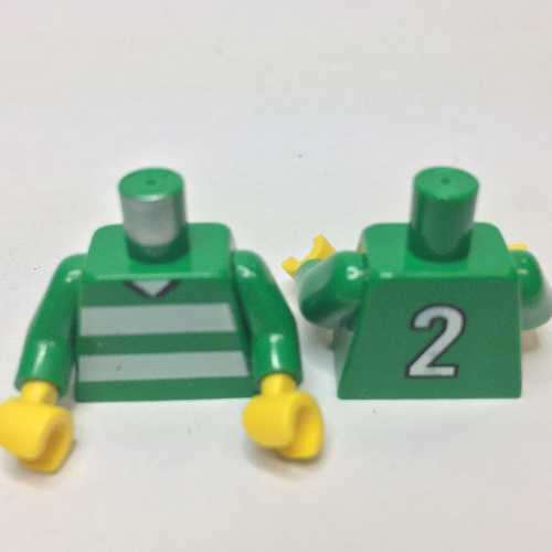- Nom : Torso Soccer Horizontal White Stripes and No. 2 Back Print / Green Arms / Yellow Hands
