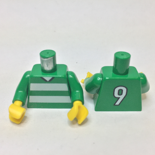 - Nom : Torso Soccer Horizontal White Stripes and No. 9 Back Print / Green Arms / Yellow Hands