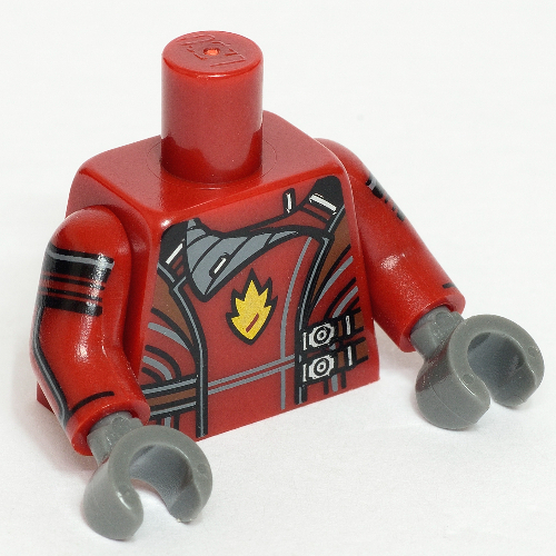 - Nom : Torso Jacket with Dark Bluish Gray Collar, Silver Side Clasps and Gold Badge Print (Rocket) / Dark Red Arms Printed / Dark Bluish Gray Hands