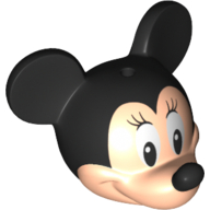 - Nom : Minifig Head (Mouse Face) with Black Ears and Nose and White Eyes with Long Eyelashes print [Minnie]