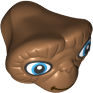- Nom : Minifig Head Alien/Creature - E. T. with Wide Medium Blue Eyes and Dark Brown Closed Smile print