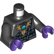- Nom : Torso Armor with Dark Bluish Gray Belts, Gold Raven Head and Blue Round Jewel (Chi) Print / Black Arms / Dark Purple Hands
