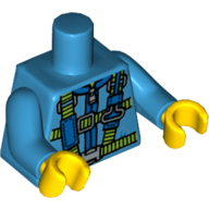 - Nom : Torso Wetsuit with Blue Sign and Lines and Dark Bluish Gray Stripes Front and Silver Zipper Back Print / Black Arms / Yellow Hands