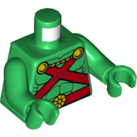 - Nom : Torso Muscles Outline with Red Straps and Belt, Yellow Clasps and Cord Print / Green Arms / Green Hands
