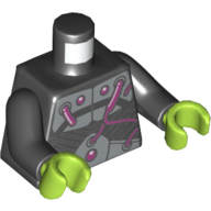 - Nom : Torso Armor with Silver Metal Plates and Dark Pink Electrical Wires and Buttons Print / Black Arms / Lime Hands