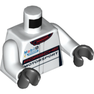 - Nom : Torso 'PORSCHE MOTORSPORT' Race Suit with 'Mobil' Logo and Red Collar Print / White Arms / Black Hands