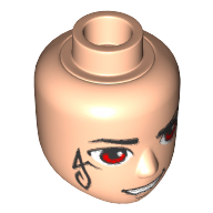 - Nom : Minifig Head Modified - Friends Male with Thin Black Eyebrows and Red Eyes - Black Elves Tattoo on Right Cheek - Open Mouth Smirk Print