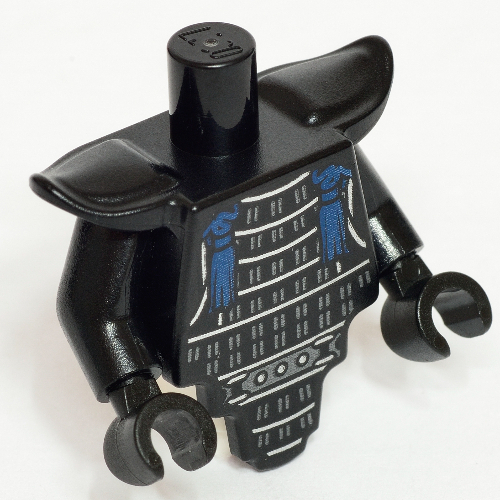 - Nom : Torso Short and Modified with Armor - Smooth Breastplate with Shoulder Pads - Silver Armor and Dark Blue Tassels Print - Black Arms - Black Hands