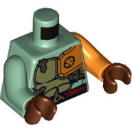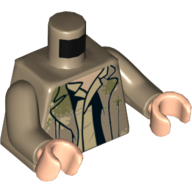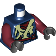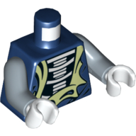 - Nom : Torso with Dual Side Print - Tattered Ninjago Robe with Yellowish Green Collar and Dark Blue Undershirt in Front - Dark Blue Arms - Yellowish Green Hands