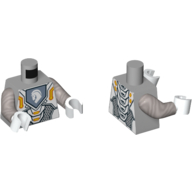 - Nom : Torso Nexo Knights Armor with Orange and Gold Circuitry and Sand Blue Emblem with Gray Horse Head Print / Flat Silver Arms / White Hands