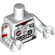 - Nom : Minifig Torso Race Jacket with Red Panel and 'AIRBORNE' on Front and Back print / White Arms / Dark Bluish Gray Hands
