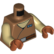 - Nom : Torso SW Vest Robe Front with Blue Name Badge over Tan Undershirt Reddish Brown Belt with Buckle - Back with Belt and Straight Center Seam and Angled Side Seams / Tan Arms / Dark Orange Hands