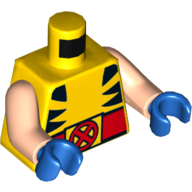 - Nom : Torso with Black Claw Markings and Red Belt with Red 'X' on Yellow Buckle Print - Light Flesh Arms - Blue Hands (Wolverine)