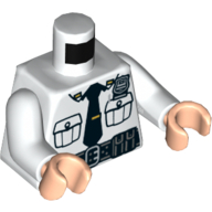 - Nom : Minifig Torso - Suit with Notched Lapels - Striped Vest over Orange Shirt and Green Tie print (Joker) - Dark Purple Arms - White Hands