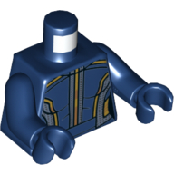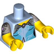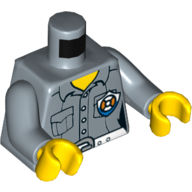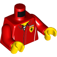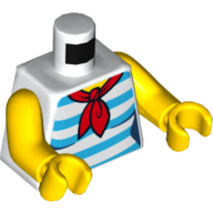 - Nom : Torso - White Polka Dot Shirt with 3 Red Buttons - Blue Suspenders and Red Polka Dot Bow Tie Print - Yellow Right Arm / Red Left Arm - Yellow Hands