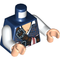 - Nom : Torso with Dual Side Print - Tan Straps over Tank Top with Gray Splotches - Chain with Dog Tag on Front - Yellow Arms - Dark Bluish Gray Hands