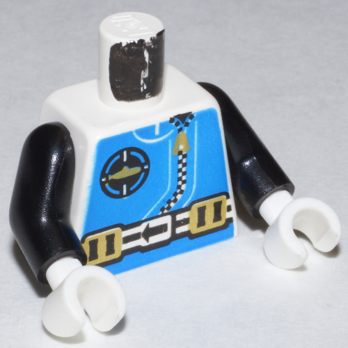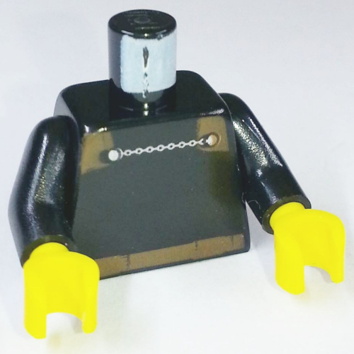 - Nom : Torso Adventurers Orient Black Jacket, White Scarf, Brown Belt Print / Black Arms / Yellow Hand Right / Dark Gray Hook Left