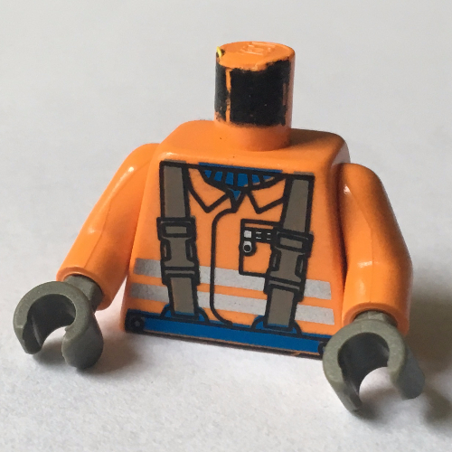 - Nom : Torso Town Construction Brown Suspenders, Shirt, Safety Stripes Print / Orange Arms / Dark Gray Hands