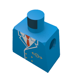 - Nom : Torso Train Suit, Red Tie, Gold Buttons and Logo Print / Blue Arms / Yellow Hands