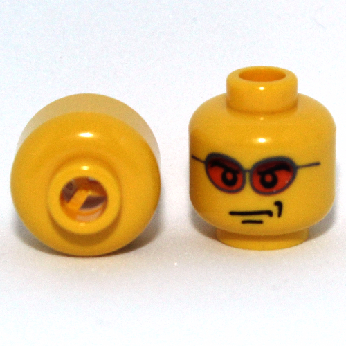 - Nom : Minifig Head Glasses with Orange Sunglasses and Smirk Print [Blocked Open Stud]
