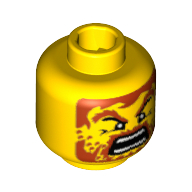 - Nom : Minifig Head Alien with Red Eyes, Grin with Sharp Teeth, Reptile Scales Print [Blocked Open Stud]