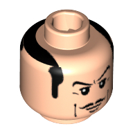 - Nom : Minifig Head Moustache Black, Messy Brown Hair, Small Mouth with Lower Lip, 3 Spots under Left Eye Print (Adric) [Blocked Open Stud]