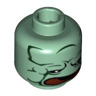 - Nom : Minifig Head Dual Sided - Green Eyes with Frown and Scar / Open Mouth Print [Takeshi] [Blocked Open Stud]