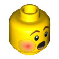 - Nom : Minifig Head Rosy Cheeks, Open Mouth, Brown Eyebrows Print (Caroler) [Blocked Open Stud]