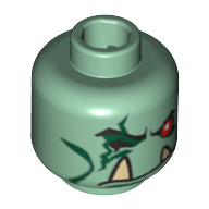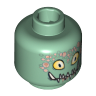 - Nom : Minifig Head Alien with Red Eyes, Dark Green Lips and Lower Fangs Print [Blocked Open Stud]