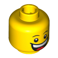 - Nom : Minifig Head Male Arched Eyebrows, White Pupils, Wide Grin with Dimples Print [Blocked Open Stud]