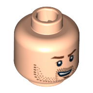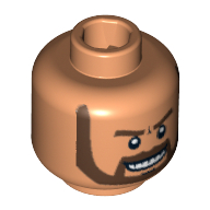 - Nom : Minifig Head Beard with Brown Trim Beard (angular below mouth), Eyebrows and Smile Print (Crix Madine) [Blocked Open Stud]