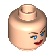 - Nom : Minifig Head Dual Sided Female with Red Lips, Crow's Feet and Beauty Mark Annoyed / Smiling Print [Blocked Open Stud]