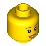 - Nom : Minifig Head Female with Peach Lips, Open Mouth Smile, Brown Eyebrows Print [Blocked Open Stud]