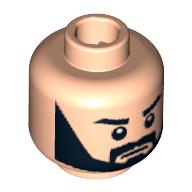 - Nom : Minifig Head Dual Sided Beard Stubble, Bushy Eyebrows, Determined / Grin Print [Blocked Open Stud]
