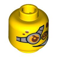 - Nom : Minifig Head Glasses with Orange Sunglasses, Brown Eyebrows and Crooked Smile Print [Blocked Open Stud]