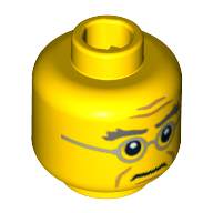 - Nom : Minifig Head Male Bushy Gray Eyebrows, Wrinkles, Silver Frame Glasses Print [Blocked Open Stud]